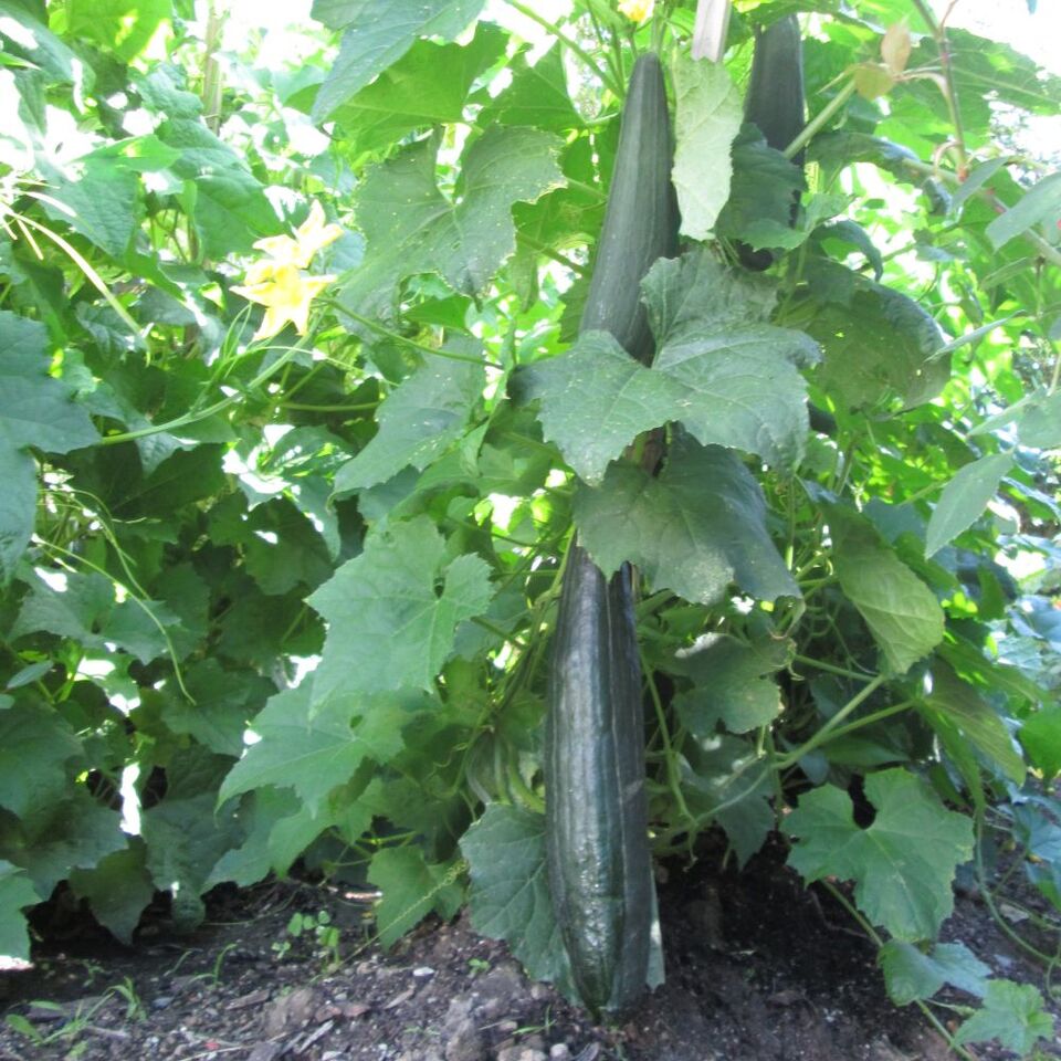 They're the same family as a cucumber, pumpkin and gourd (known as Cucurbitaceae) but they have a longer growing season of 190 days. We grow them up on a structure so they hang nice and straight and are up off the ground in case it's a wetter than usual summer where they can easily rot.